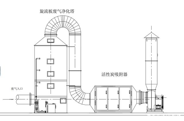 1.噴淋塔+干式過濾器預(yù)處理+活性炭吸脫附+催化燃燒;